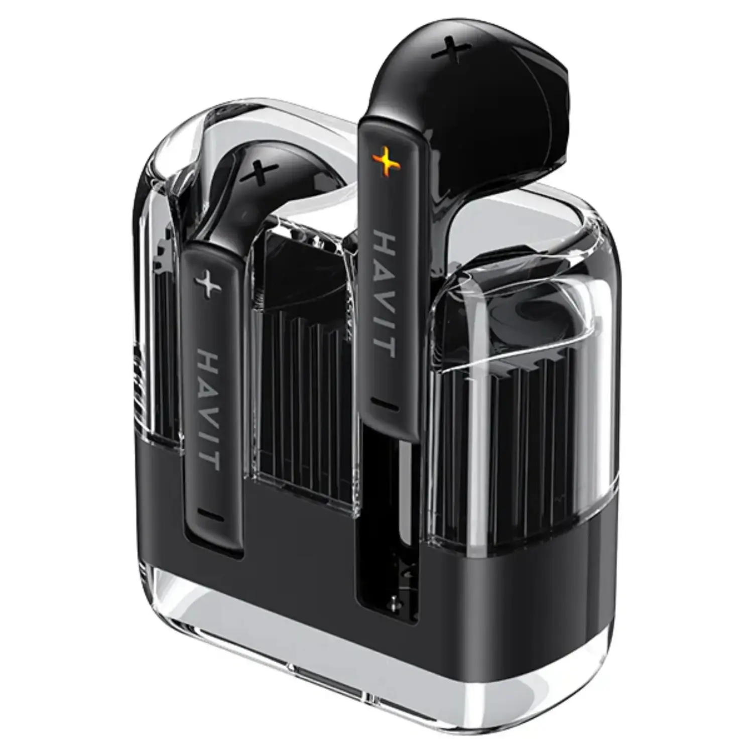 AURICULARES BLUETOOTH NEGRO*BT V5.3*CASE TRANSPARENTE 30mAhx2*4HR DE BATERIA*PUERTO DE CARGA TIPO-C